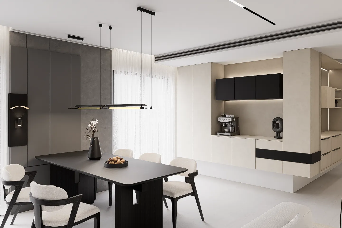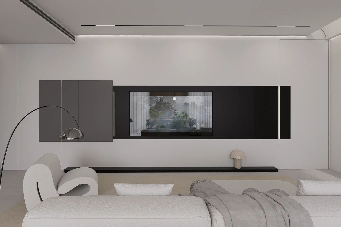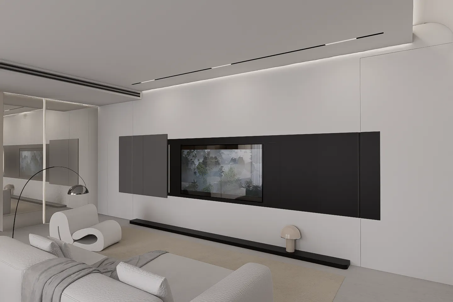 以白色作為基調,透過光影映照,形塑出乾淨俐落的空間氣質,黑與白的對比語彙,象徵極簡現代中最純粹的色彩張力。